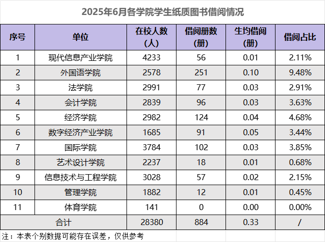 现将学校1月各学院学生读者纸质图书借阅情况公布如下: 图书馆 2025年2月19日