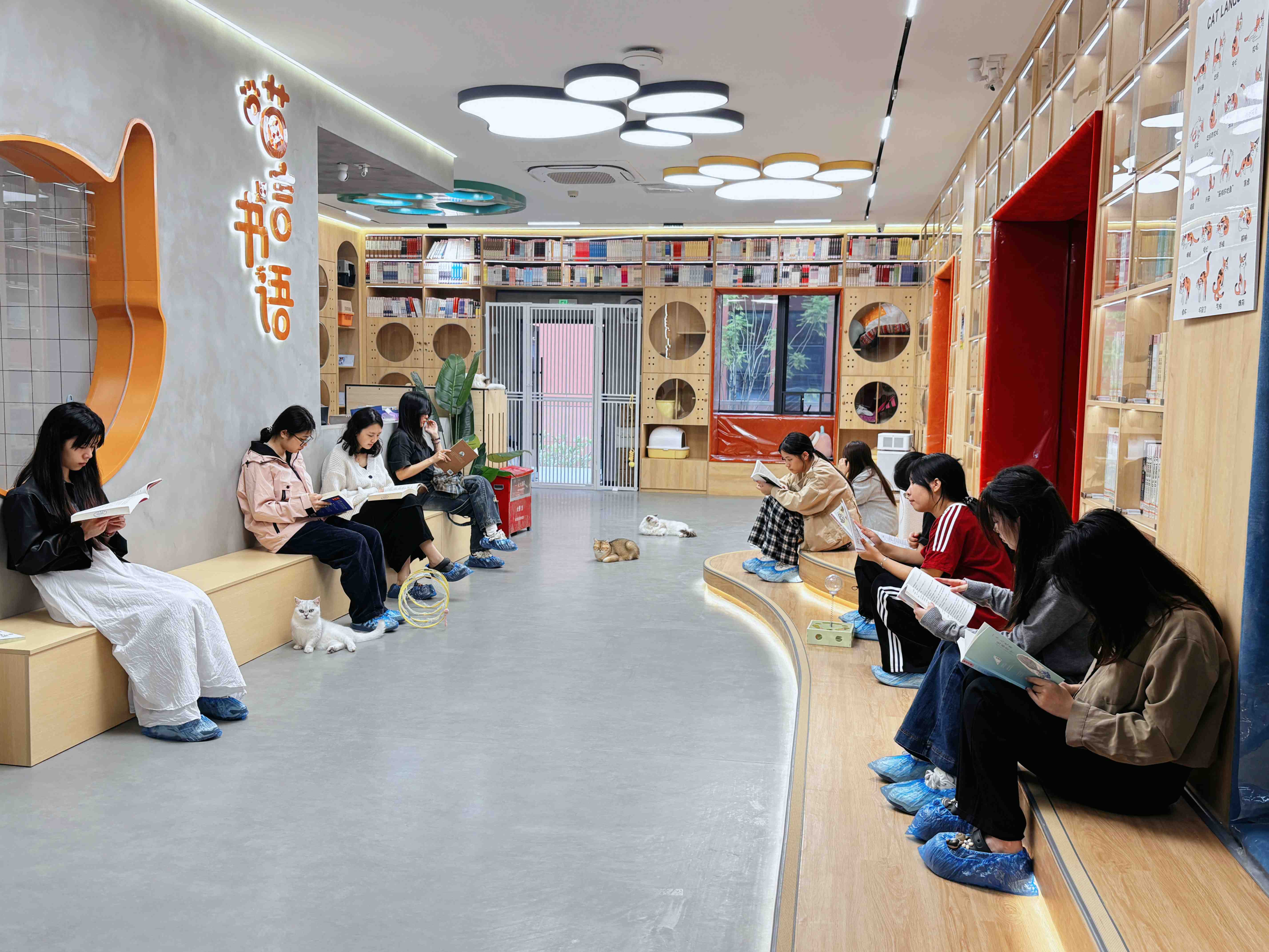 2025年10月23日,广州商学院图书馆“喵言书语”阅读空间内,第十五期“猫伴书境”沉浸式阅读活动在秋日午后温情上演。十名学子与馆内的“喵星人”相伴,在静谧与温...