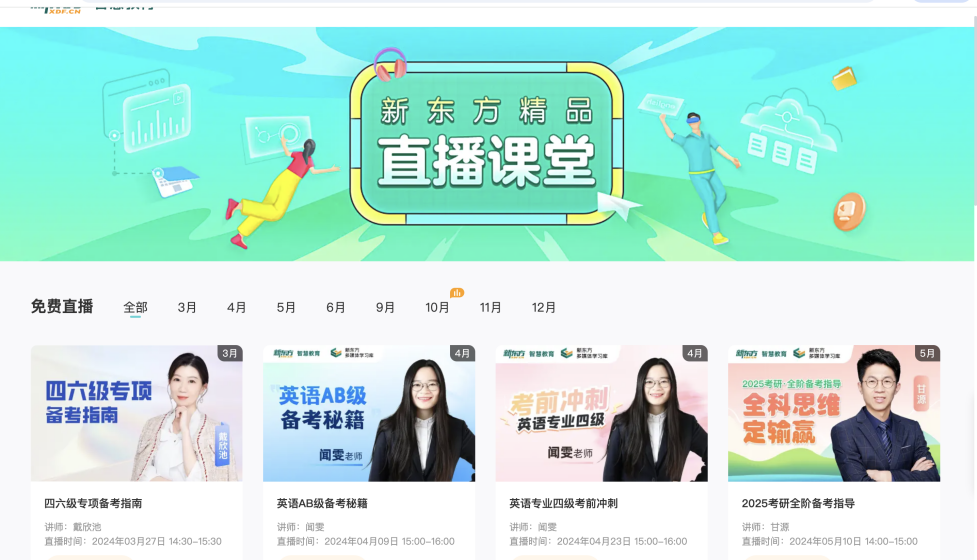 首页顶端你可以看到直播课的入口,点击进入可查询多媒体学习库精品直播课,涵盖国内外考试辅导、外语学习指导等,在线互动、直播回放,满足不同学习时间需求。